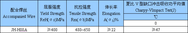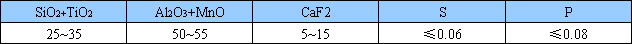 JH-SJ503,是鋁鈦型酸性燒結(jié)焊劑,堿度約0.7. 呈灰色圓形顆粒,粒度為14~60目(約1.18~0.28mm)可直流兩用,采用直流電源焊接時焊絲接正極。電弧穩(wěn)定、焊縫成形美觀,脫渣容易熔敷金屬具有優(yōu)良的力學(xué)性能。 用途:配合H08A,H08MnA等焊絲,主要用于焊接低碳鋼及某些低合金鋼結(jié)構(gòu)。適用于中等厚度的鋼板結(jié)構(gòu)。可用于多道焊,單絲焊和多絲焊。 焊劑化學(xué)成分:(%)