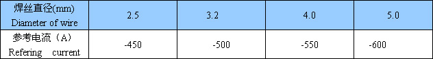 焊絲規(guī)格及參考電流:(AC或DC±)